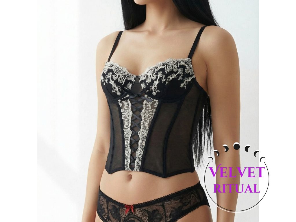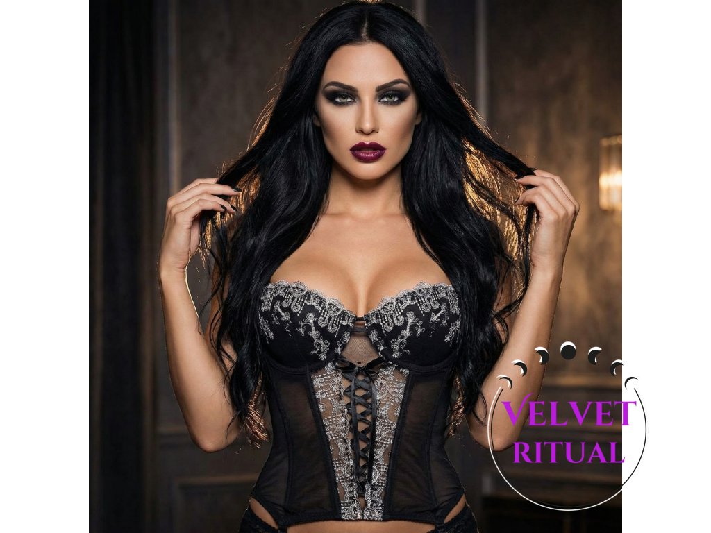 Dámský tvarující korzet Velvet Cathedral s krajkovou výšivkou