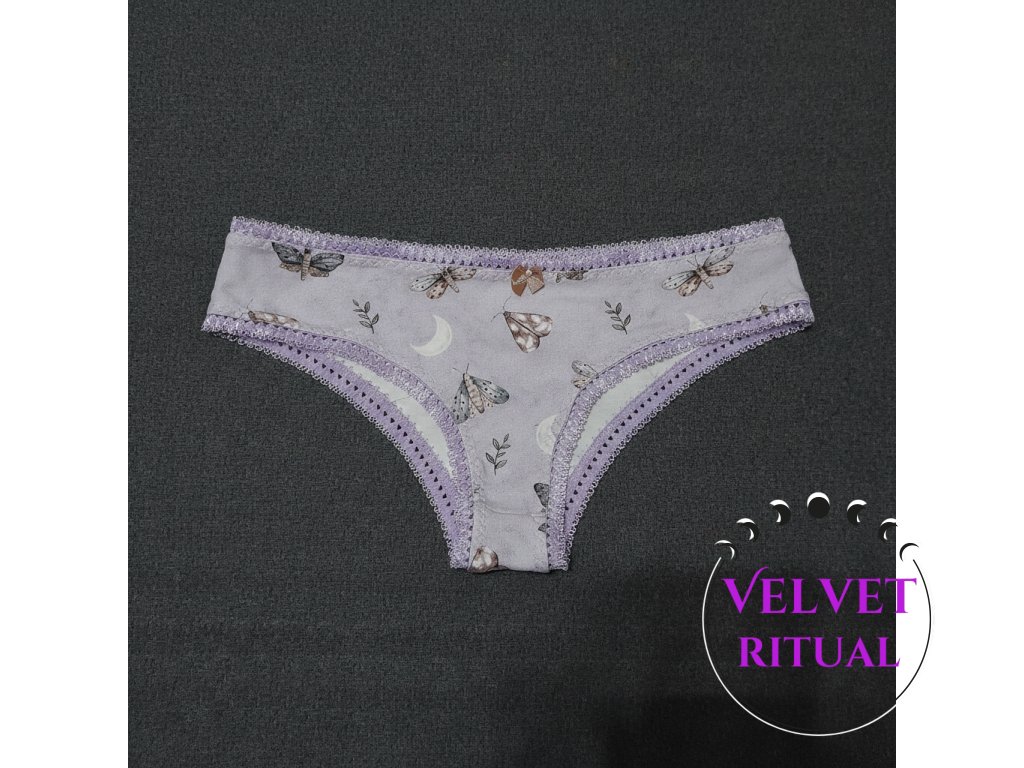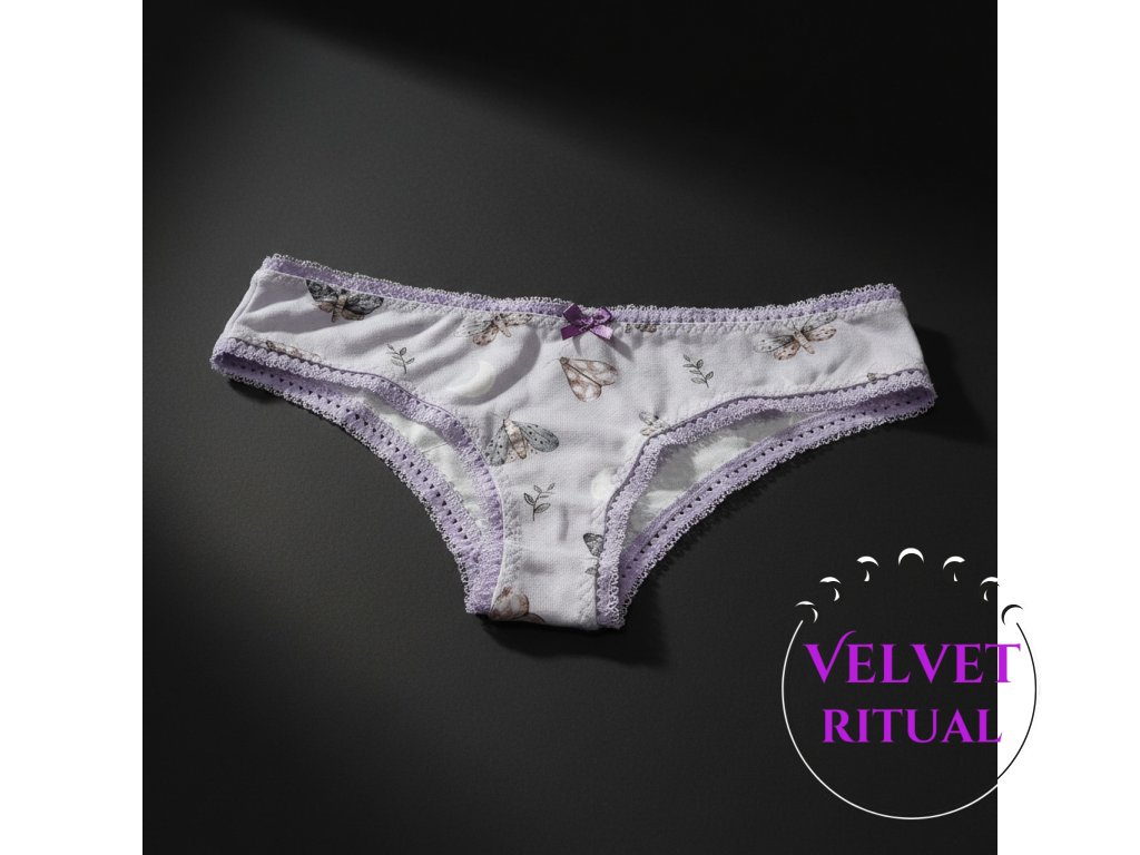 Jemnost, pohodlí a kapka nočního kouzla v jednom kousku. Tyto kalhotky zdobí něžný motiv motýlů, měsíce a drobných přírodních detailů, které vytvářejí klidnou, snovou atmosféru.