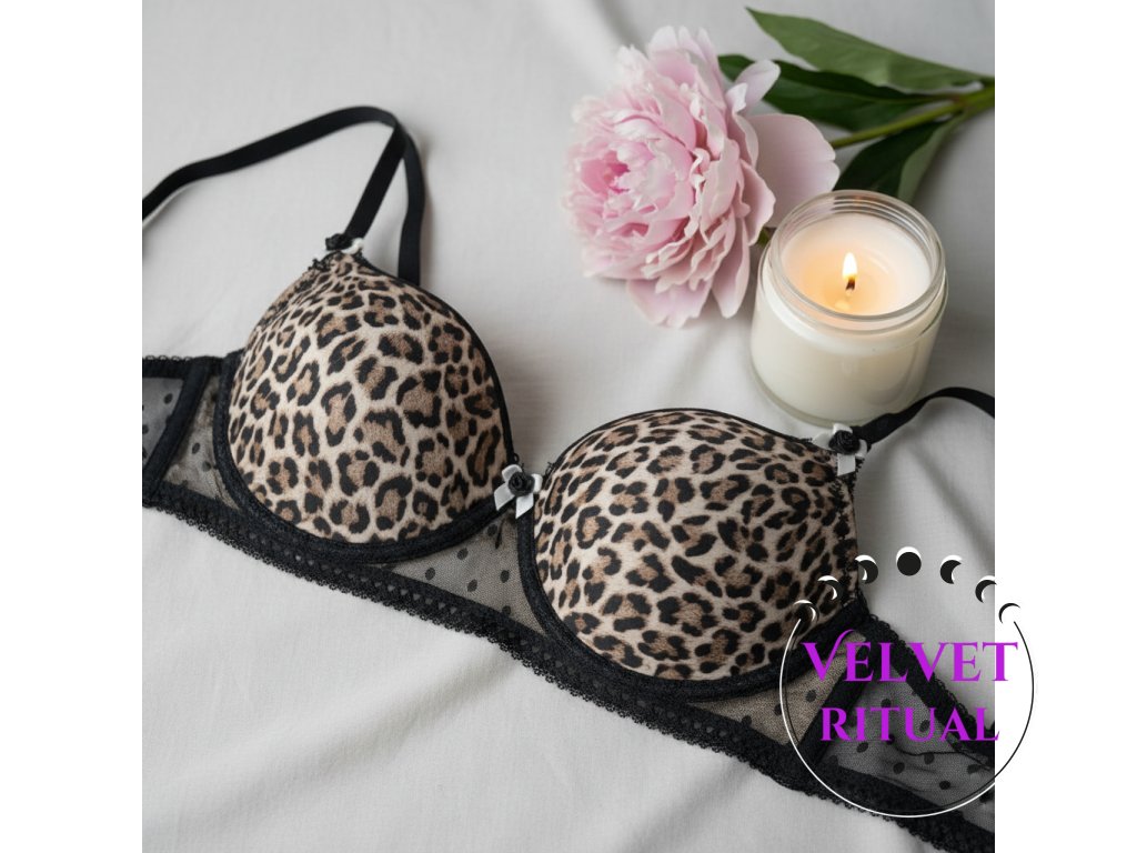 výrazný leopardí vzor pro sebevědomý look, doplněný jemnými mašličkami s malou černou růžičkou je skvělým a nepřehlédnutelným detailem